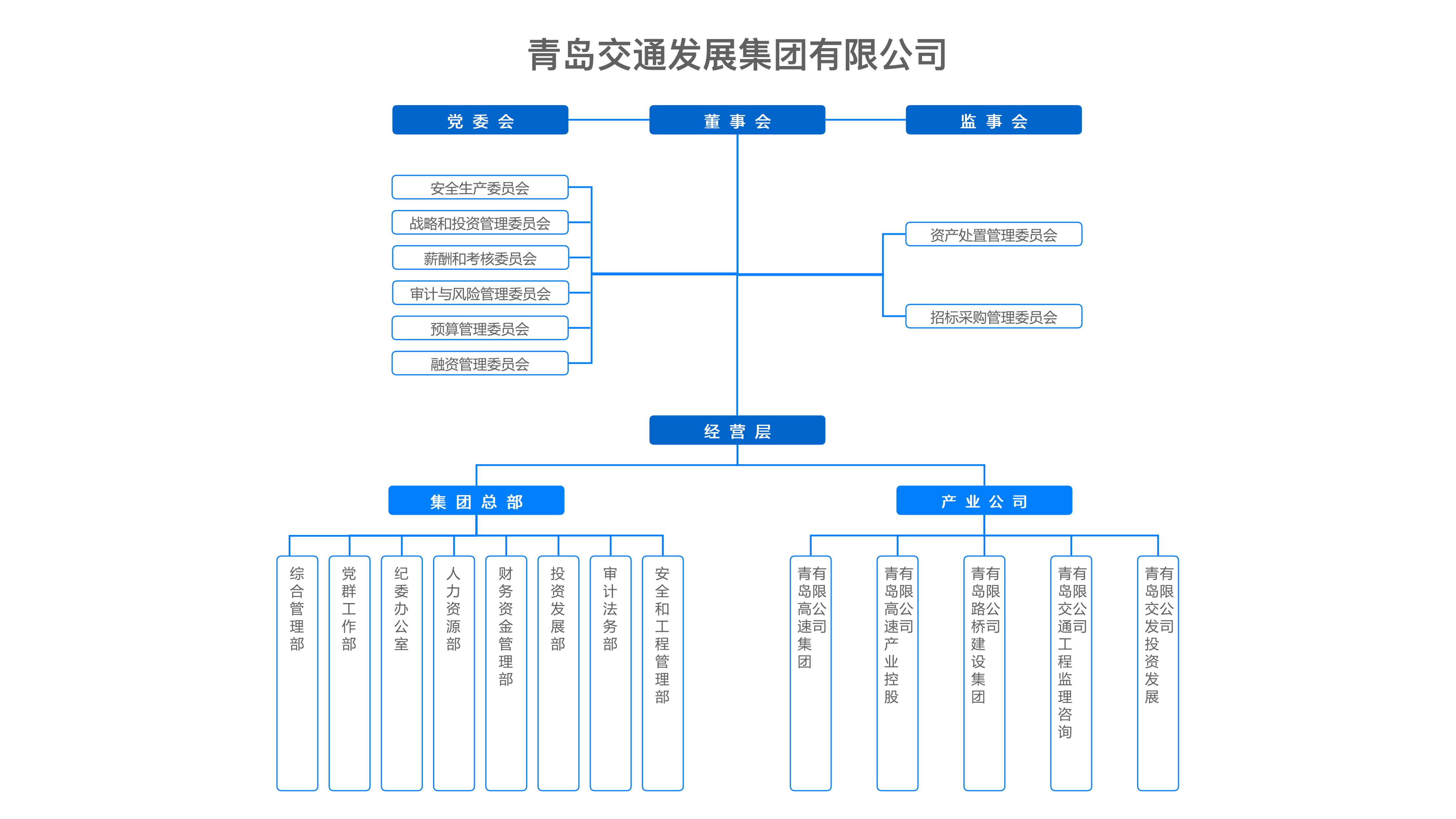 青島交通發(fā)展集團(tuán)有限公司(以下簡稱“交發(fā)集團(tuán)”)成立2012年5月,注冊(cè)資本10億元,定位為青島市交通建設(shè)投融資主體,負(fù)責(zé)所轄高速公路等交通基礎(chǔ)設(shè)施的運(yùn)營、養(yǎng)護(hù)、管理工作和投融資建設(shè)任務(wù),承擔(dān)青島市未來高速公路發(fā)展和交通基礎(chǔ)設(shè)施建設(shè)投融資等職能?,F(xiàn)有所屬二級(jí)企業(yè)18戶,干部職工2100余人。